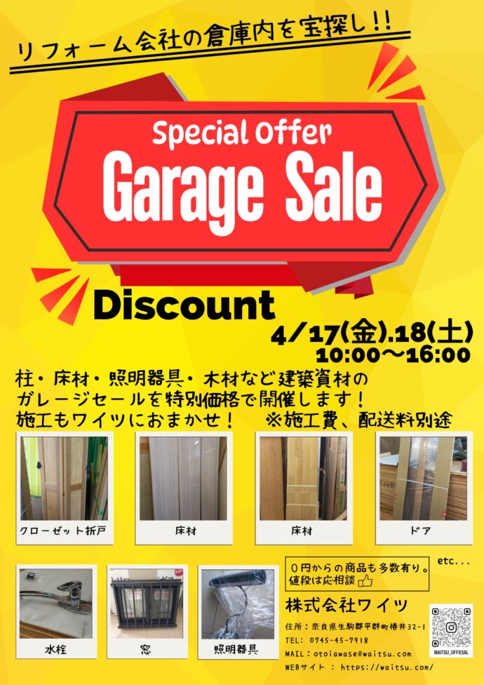 4月17日(金)18日(土)の二日間で、建築資材を特別価格でお譲りします!